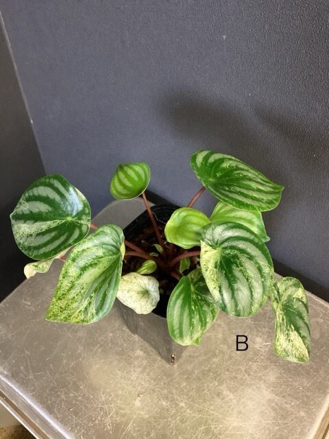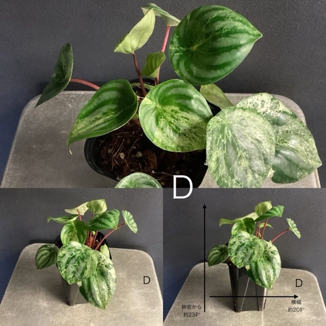 【室内向き】【おしゃれ オシャレなインテリア】熱帯植物 ペペロミア 雪兎 ペペロミア サンデルシー 斑入り スイカぺぺ斑入り 観葉植物(1723)