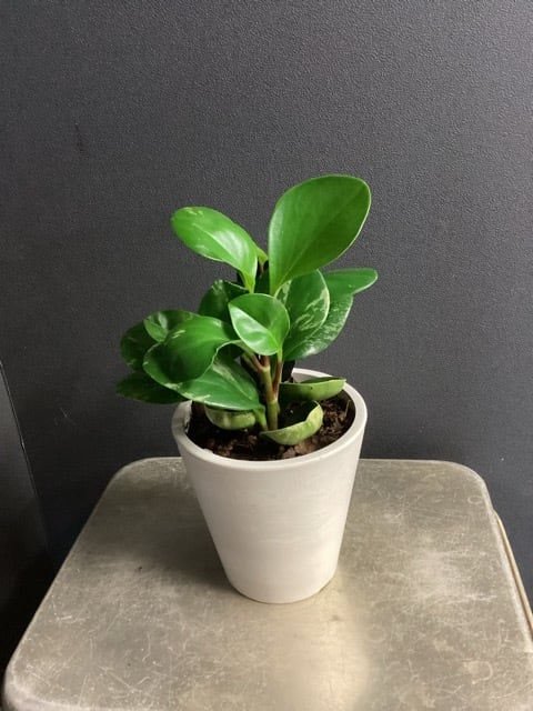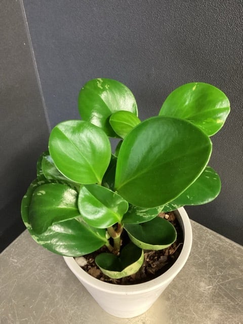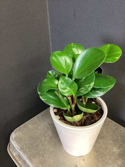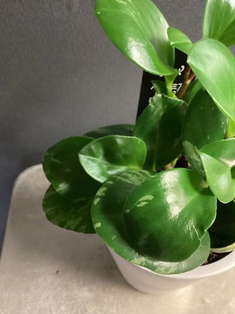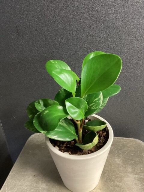 ペペロミア グリーンゴールド(斑入り)オシャレなプラスチック鉢に植付けしています。
