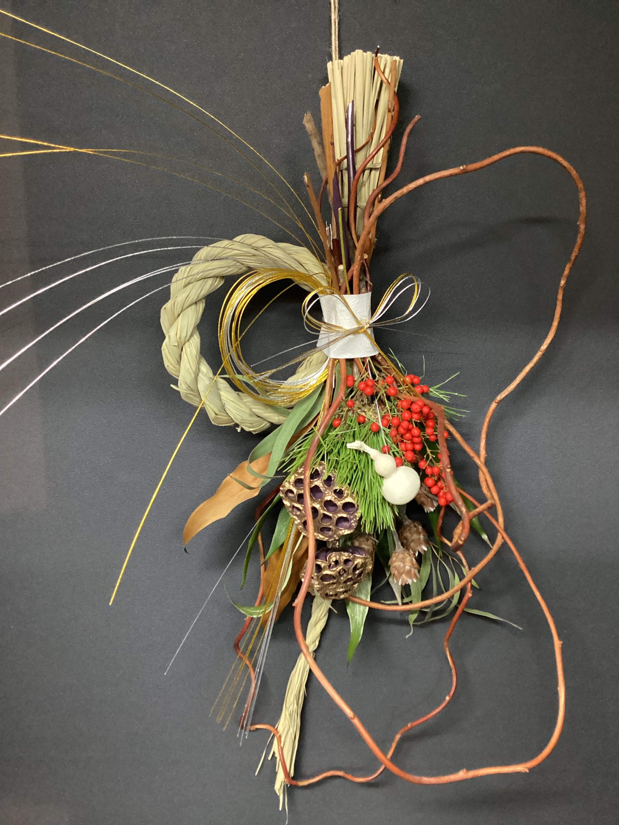 【オシャレなインテリア】〆飾り ゴボウ〆縄 大 ひょうたん付 お正月飾り (1757)