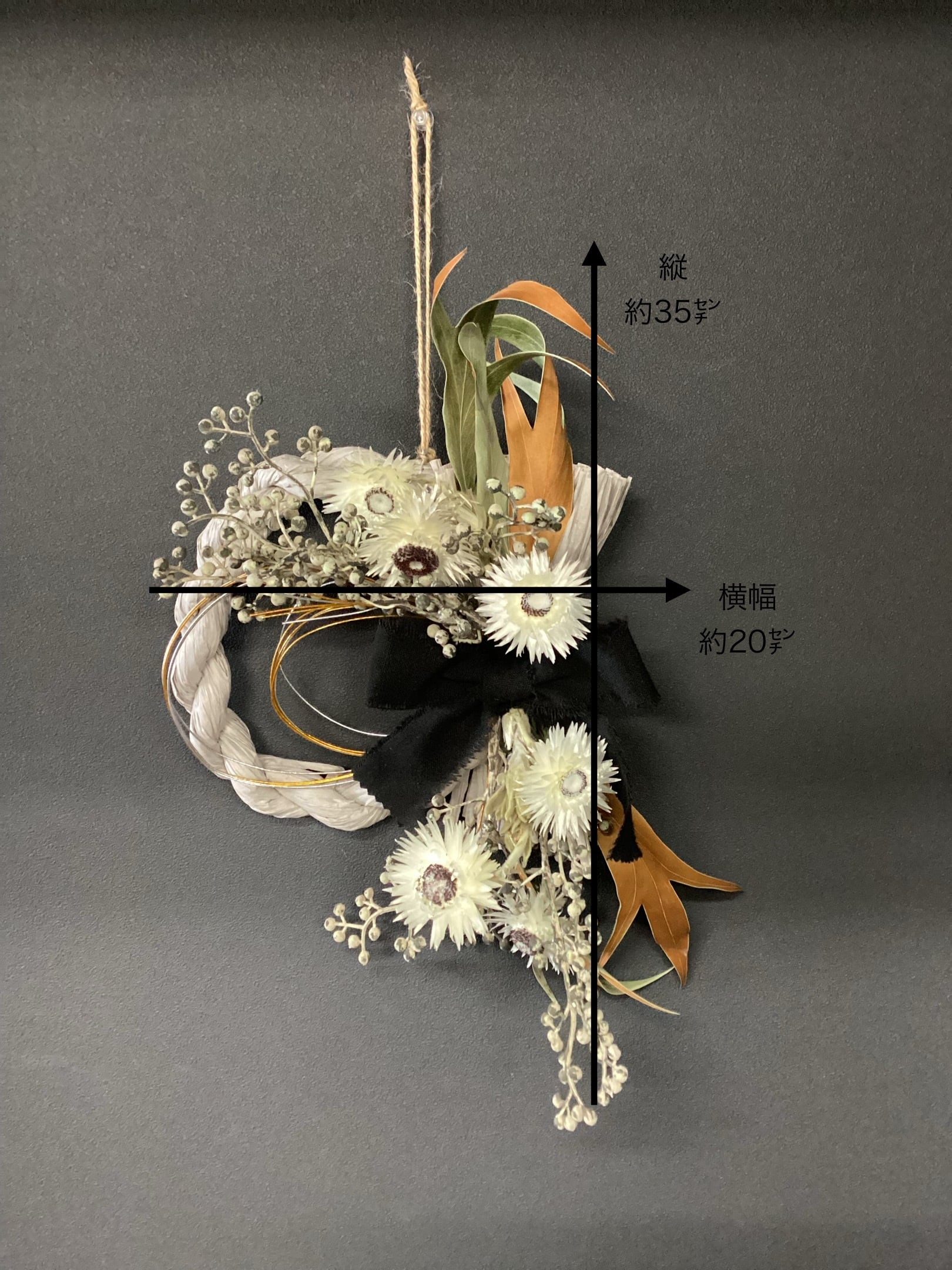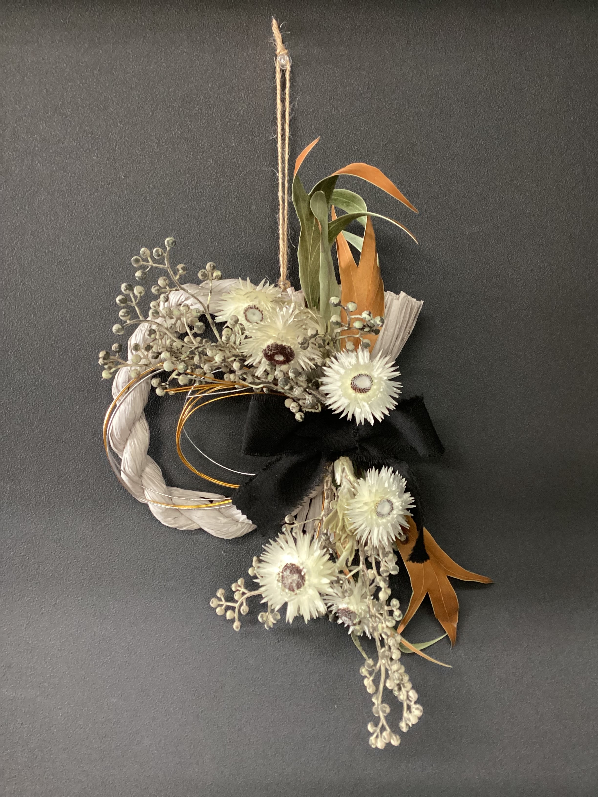 ドライフラワー&アーティシャルフラワーを使ったお正月リースです。