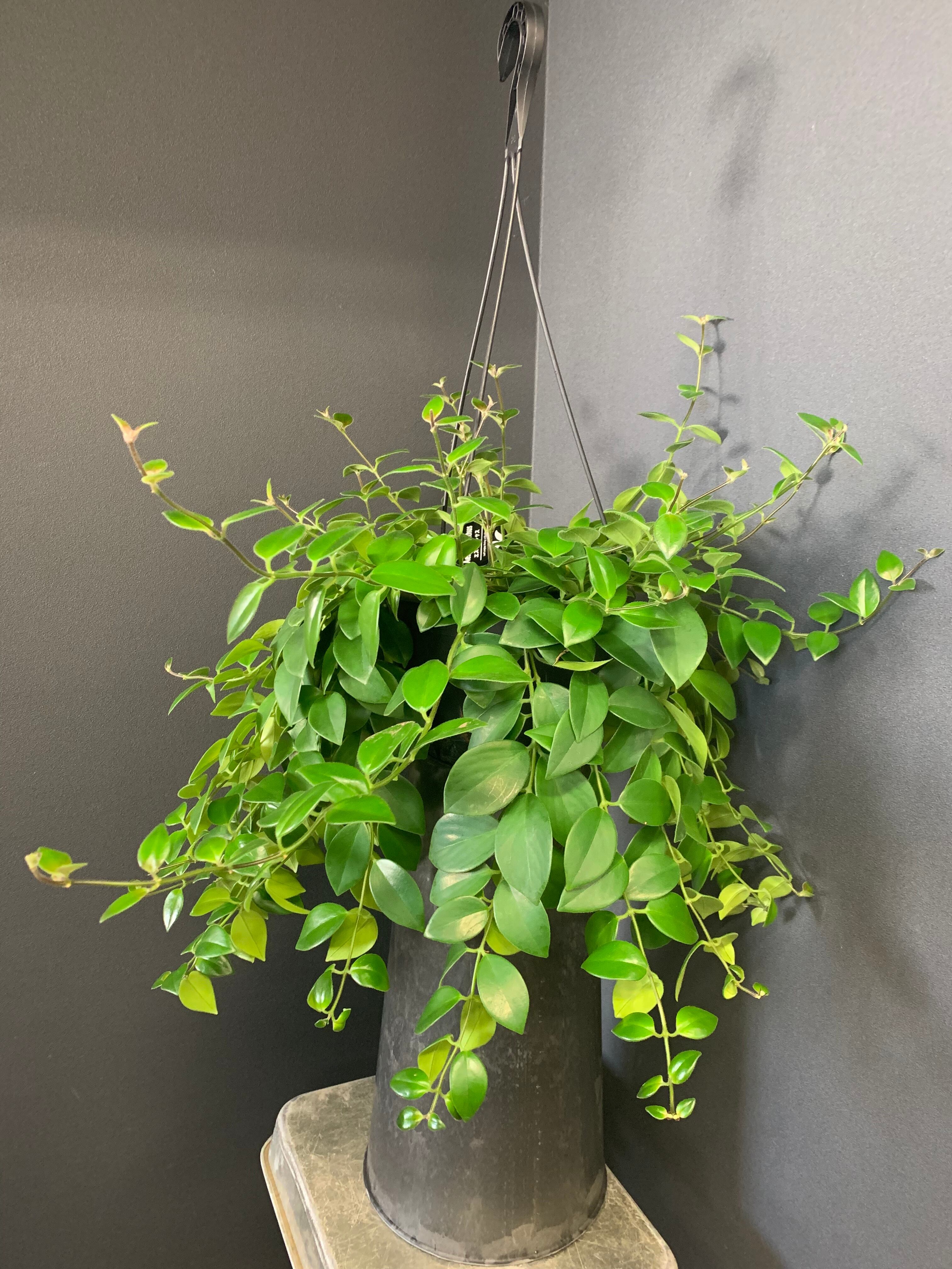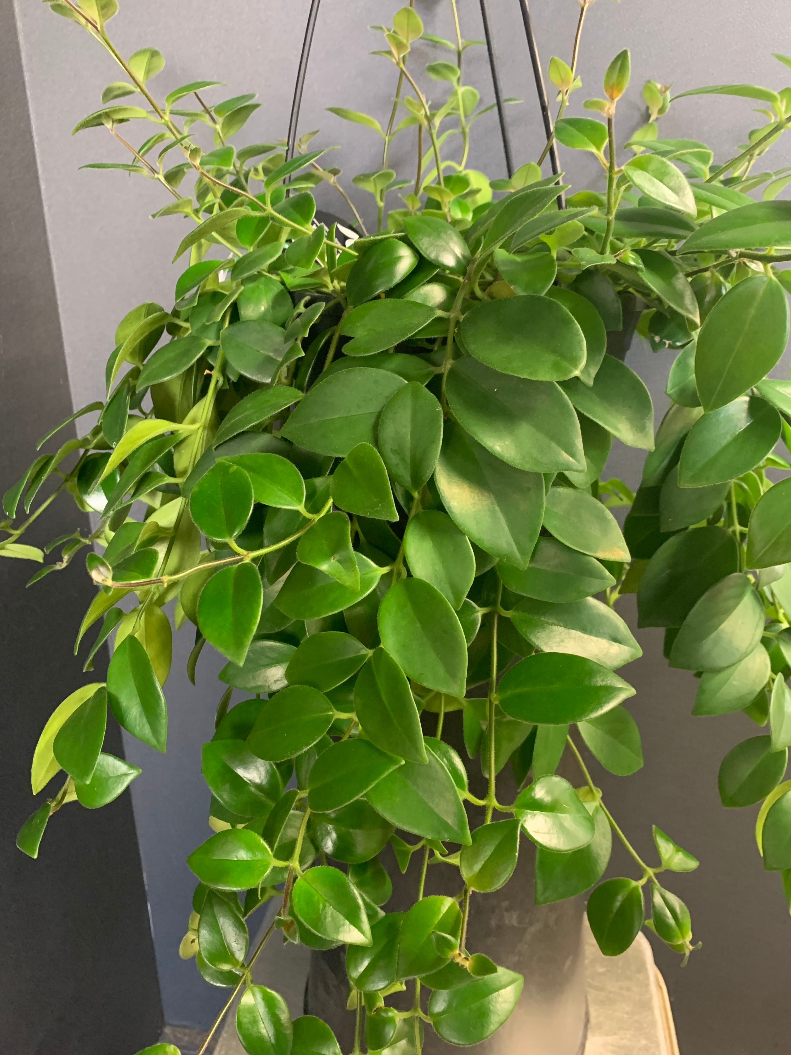 多肉質でツヤのある丸みがかったダークグリーンの葉が枝垂れるようにつく美しい品種です。