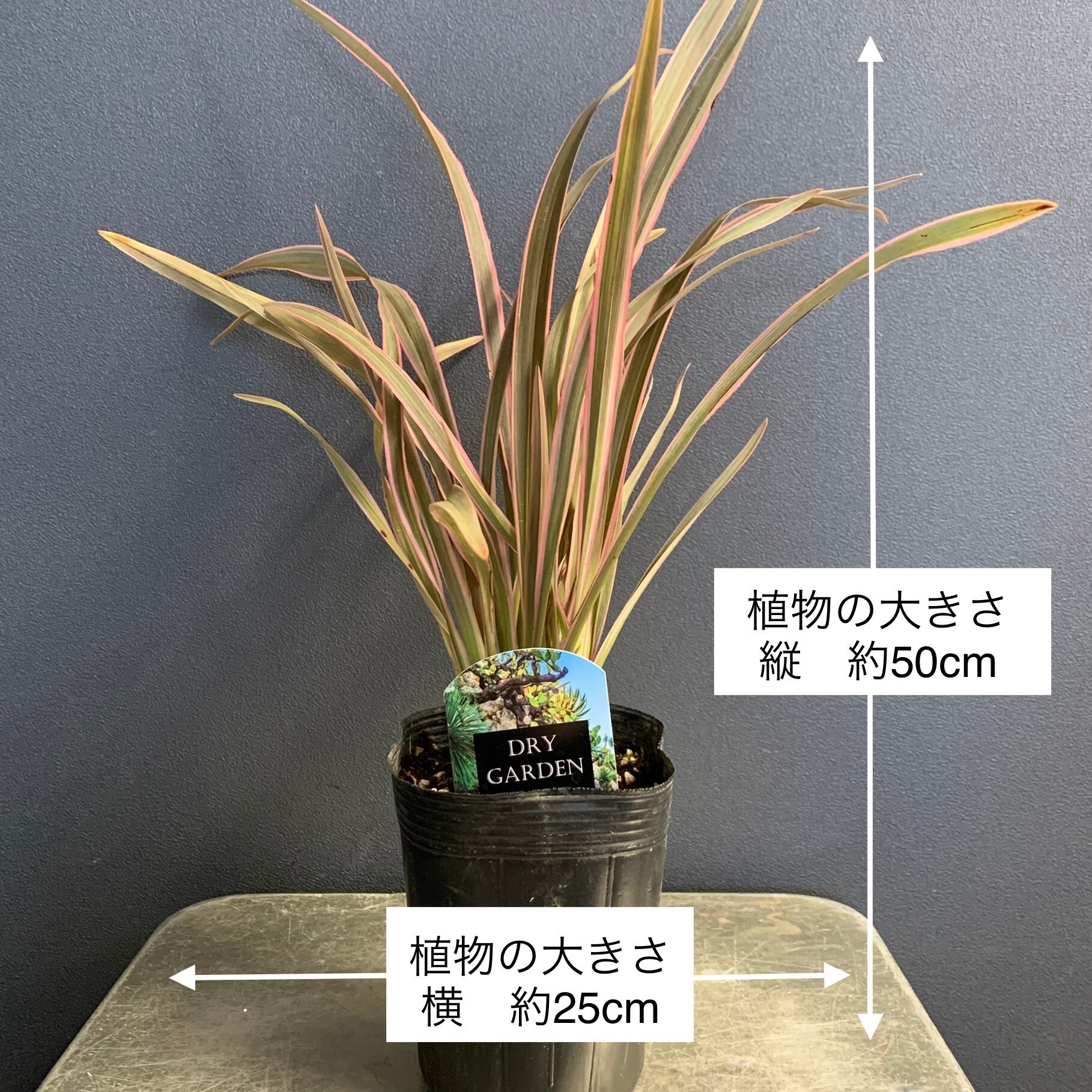 植物の大きさ:幅(1番長いところで採寸)約25cm 高さ(鉢底から植物の1番先まで)約50cm