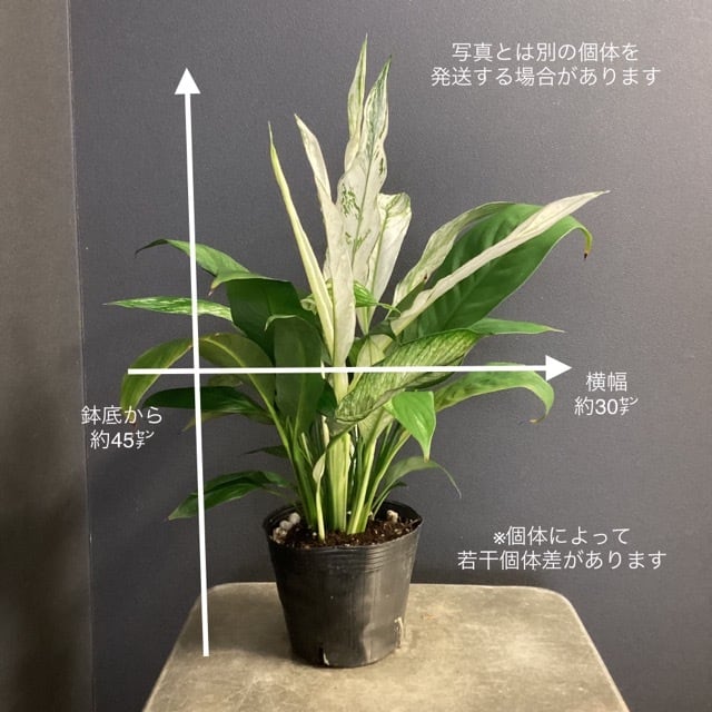 植物の大きさ:幅(1番長いところで採寸)約30cm 高さ(鉢底から植物の1番先まで)約45cm