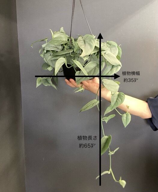 植物の大きさ:幅(1番長いところで採寸)約35cm 高さ(鉢底から植物の1番先まで)約65cm